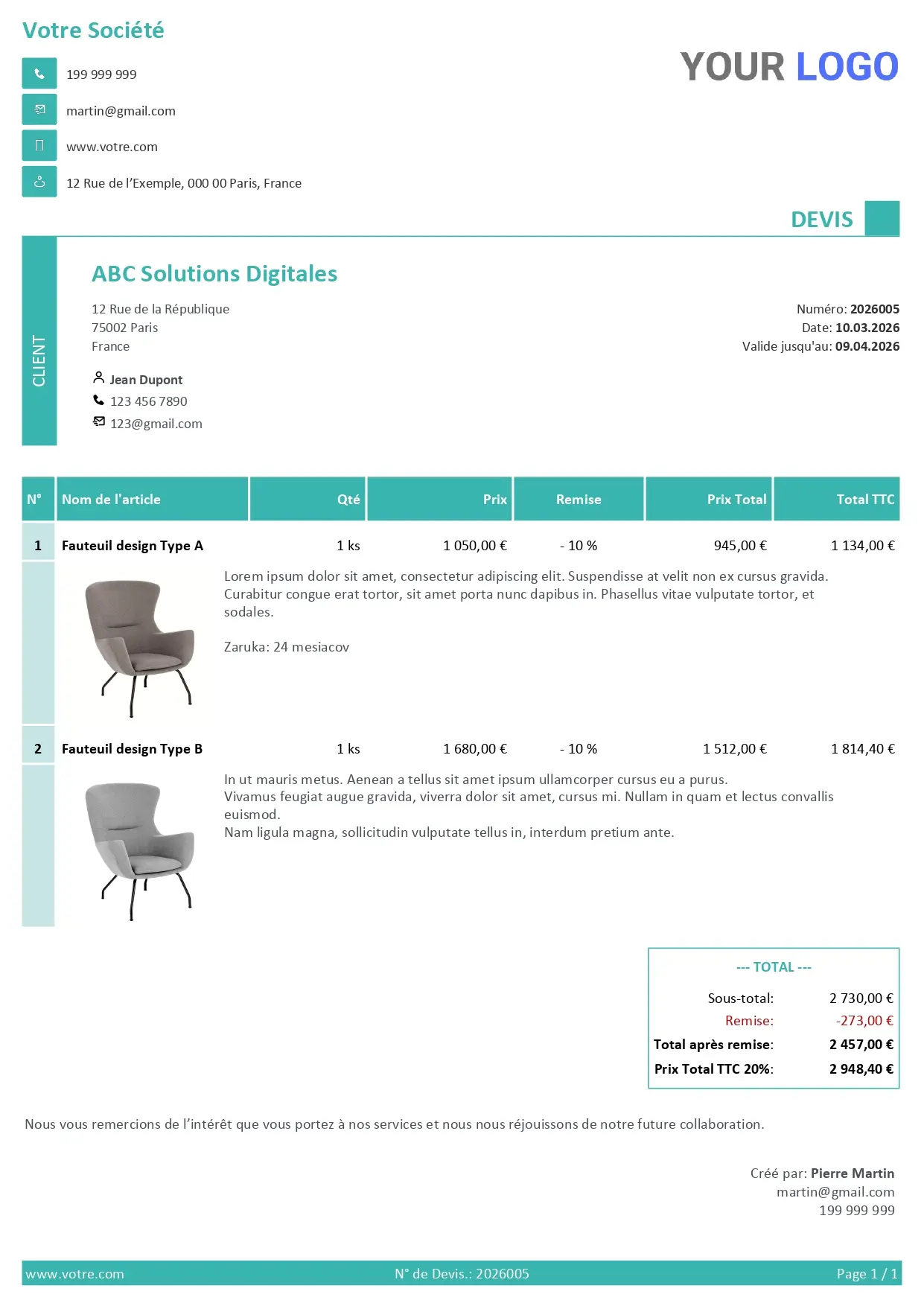 Lors de la création de devis, chaque détail compte. Des chiffres précis au langage convaincant, chaque élément peut influencer la décision de votre client.